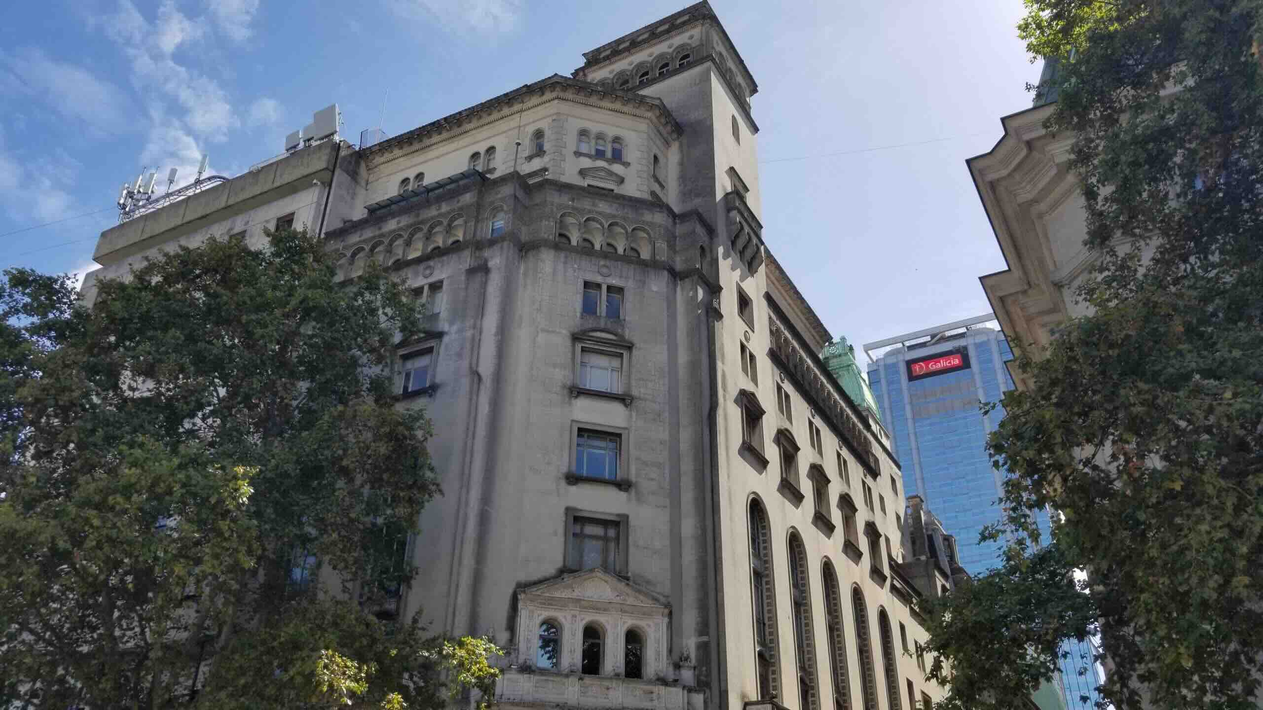 El Edificio First National Bank of Boston, construido en 1924 en estilo neoplateresco, se encuentra en la esquina de Av. Roque Sáenz Peña, Florida y Bartolomé Mitre, en el centro financiero de Buenos Aires. Fue sede del BankBoston y actualmente pertenece al ICBC Argentina. Destaca por su diseño ornamental inspirado en el plateresco español. El banco llegó al país en 1917, impulsado por el comercio entre Buenos Aires y Boston.