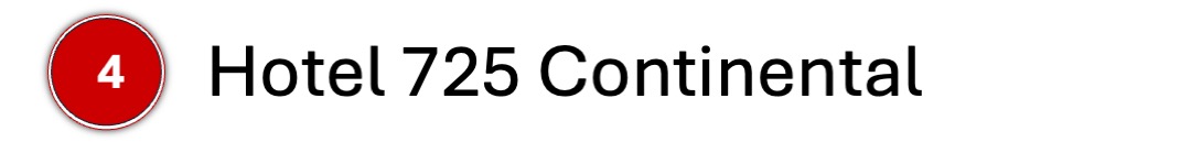 El 725 Continental Hotel, ubicado en Av. Roque Sáenz Peña 725 en Buenos Aires, fue diseñado por Alejandro Bustillo en 1927 para la aseguradora “La Continental” y se inauguró en 1931. De estilo neoclásico con influencias francesas, el edificio triangular albergaba 186 habitaciones, oficinas y confitería. Fue renovado en 2005 y en 2010 recibió protección patrimonial por su valor arquitectónico.