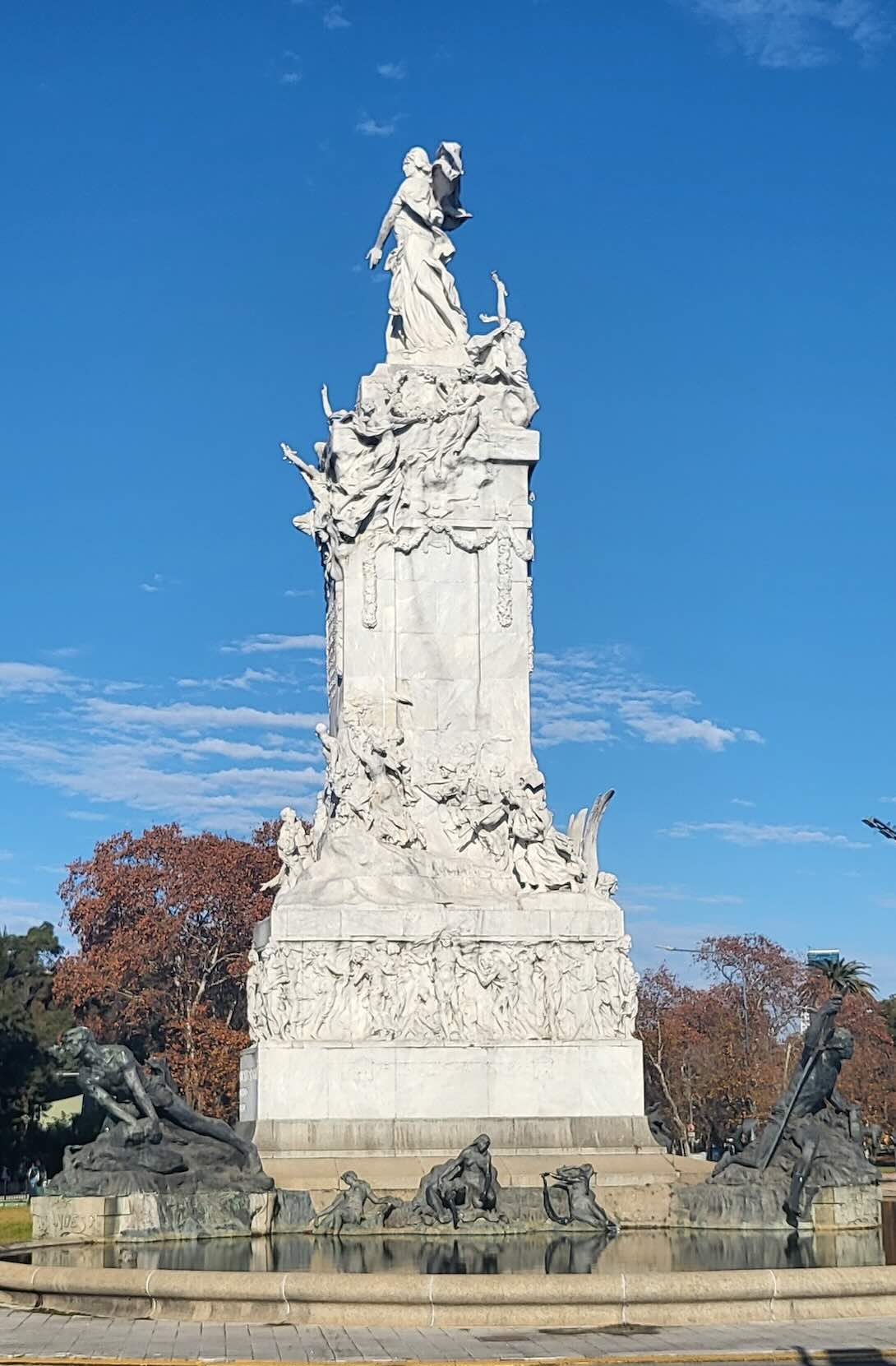 El Monumento a La Carta Magna y las Cuatro Regiones Argentinas, conocido como "Monumento de los Españoles", se ubica en Av. del Libertador y Sarmiento, Buenos Aires. Fue donado por la colectividad española en 1910 por el centenario de la Revolución de Mayo. Su construcción enfrentó numerosas demoras por la muerte de escultores, huelgas, tormentas y el hundimiento del barco que transportaba parte de las esculturas. Finalmente fue inaugurado en 1927. En 1934 se utilizó en el Congreso Eucarístico Internacional. En 2011 se modernizó su iluminación y en 2019 y 2022 fue restaurado, aunque sufrió vandalismo en 2023.
